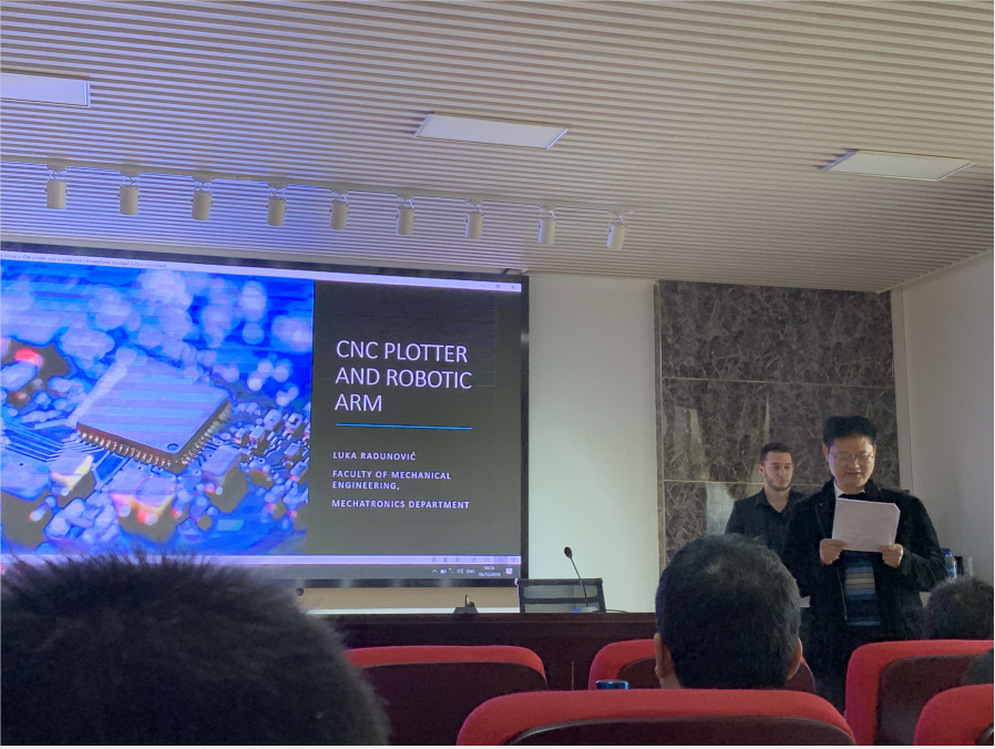接着是Luka Rradunovic ,他来自黑山大学机械学院(Faculty of mechanical)机电部(Mechatronics)。他进行了题为CNC plotter and Robotic Arm的讲座分享,讲解了数控绘图的原理、算法实现以及从多方面分析了机械臂的使用。