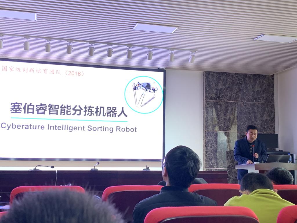 来自创新实验室的王磊老师给我们带来了 Cyberature Intelligent Sorting Robot的演讲。介绍了他的塞博睿智能分拣机器人并讲述了一个创业项目从立项开始到如今入选国家创新项目的创业经历。