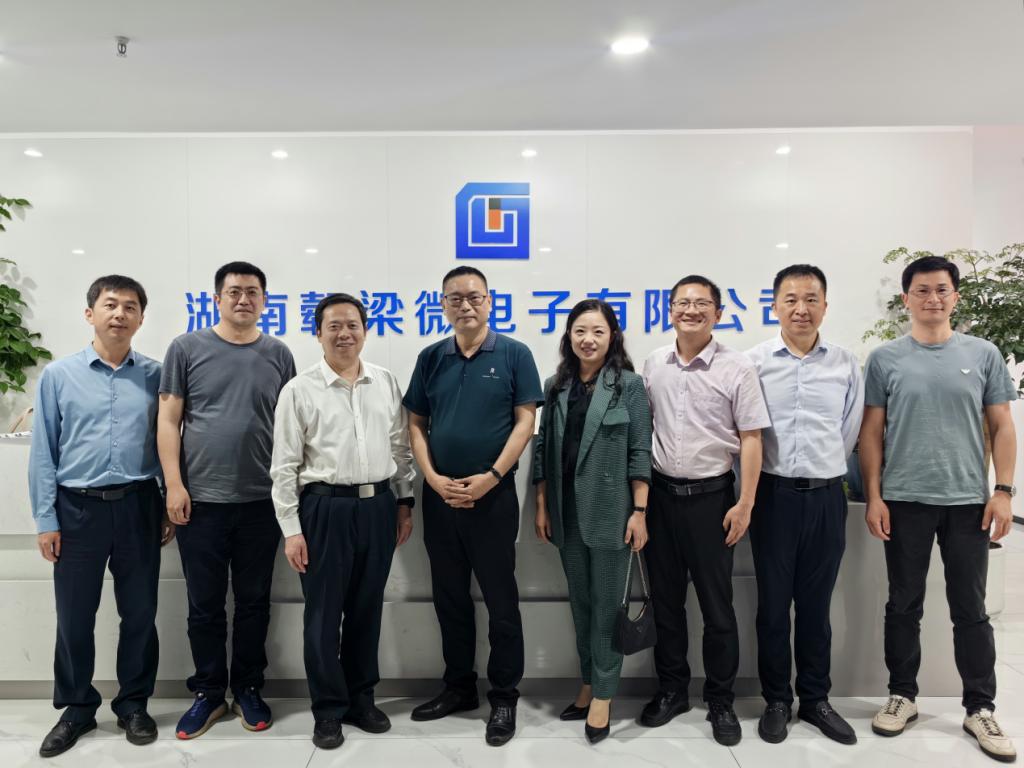 2023年5月25日下午,在线买世界杯平台研究生院副院长(研工部部长)闾兰、物理与电子科学学院党委书记张国强、副院长(主持工作)张卫兵、电子信息系主任邹望辉一行前往湖南毂梁微电子有限公司调研研究生联合培养情况,并举行了车规电子器件与DSP芯片技术湖南省研究生联合培养基地授牌仪式。湖南毂梁微电子有限公司副总经理杨一艺、汪东、陈虎、首席科学家李振涛等公司负责人出席相关活动。