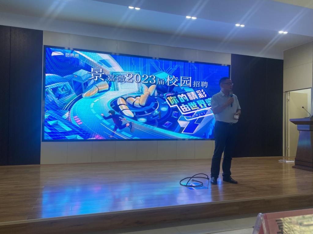 接下来,往届的学长张强向在座同学们分享他在景嘉微的成长和收获,并且从企业文化、家国情怀、自我提升等方面分析为什么要加入景嘉微。随后,由景嘉微的HR为同学们详细介绍了景嘉微公司当前情况、发展平台及薪资福利、岗位需求、应聘方式及面试指南。从公司附近的生态环境到内部的科研条件,全方位为同学展示景嘉微公司基本情况。并且展示了公司荣誉,产品及专利,其中包括明星产品——GPU-JM5400及GPU-JM7200。HR重点提及景嘉微的企业优势、企业文化、团队氛围、多轨制的发展通道、薪资待遇员工福利,表示景嘉微欢迎有实力有素质的青年人的加入。