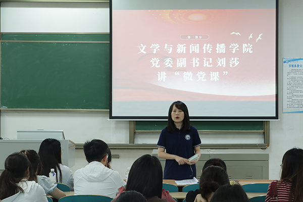 5月26日至28日,文新学院中国语言文学研究生党支部、新闻学研究生党支部、汉语言文学本科生党支部、新闻学本科生党支部结合“一月一课一片一实践”要求,分别开展了“以学增智,提高担当本领”专题学习活动。院党委副书记刘莎出席本科生党支部党日活动。