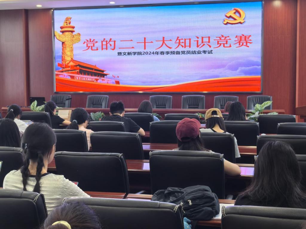为贯彻落实党的二十大精神,积极探索“党建+互联网”新模式,进一步提升预备党员的理论知识水平,5月21日12时10分,“党的二十大知识竞赛暨文新学院2024年春季预备党员结业考试”于世界杯官网金盆岭校区九号教学楼218室成功举行。