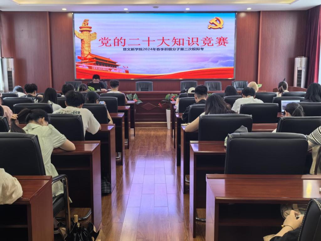 为贯彻落实党的二十大精神,积极探索“党建+互联网”新模式,进一步提升积极分子的理论知识水平,5月27日12时10分,“党的二十大知识竞赛暨文新学院2024年春季入党积极分子第二次模拟考试”于世界杯官网金盆岭校区九号教学楼218室、223室成功举行。