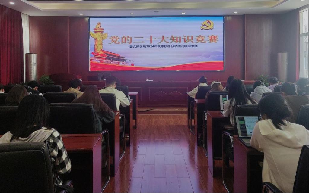 为贯彻落实党的二十大精神,积极探索“党建+互联网”新模式,进一步提升积极分子的理论知识水平,11月12日12时10分,“党的二十大知识竞赛暨文新学院2024年秋季积极分子第一次模拟考试”于世界杯官网金盆岭校区九号教学楼218室成功举行。