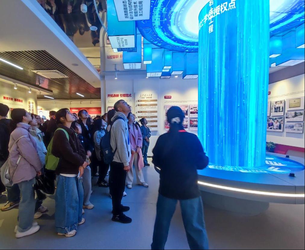 在讲解员的引导下,党校学员们依次沿着基地内所设置的四个篇章路线进行了参观,在“时空穿梭”中全方位地了解了世界杯官网与时代同发展、与人民齐奋进的发展历程。在参观过程中,讲解员重点讲述和介绍了展览上涉及的各位优秀长理学生与老师的相关感人事迹,以此来鼓励大家不断努力、追寻榜样,奋发有为、再续辉煌。