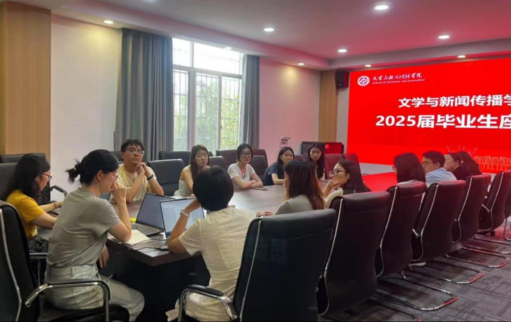 2025年6月10日下午,文学与新闻传播学院在金盆岭校区学院三楼会议室召开2025届毕业生座谈会。党委副书记刘莎、副院长侯承相、各系教师代表与2025届毕业生代表齐聚一堂,围绕人才培养主题,就学业、实践、就业等话题展开深入交流。