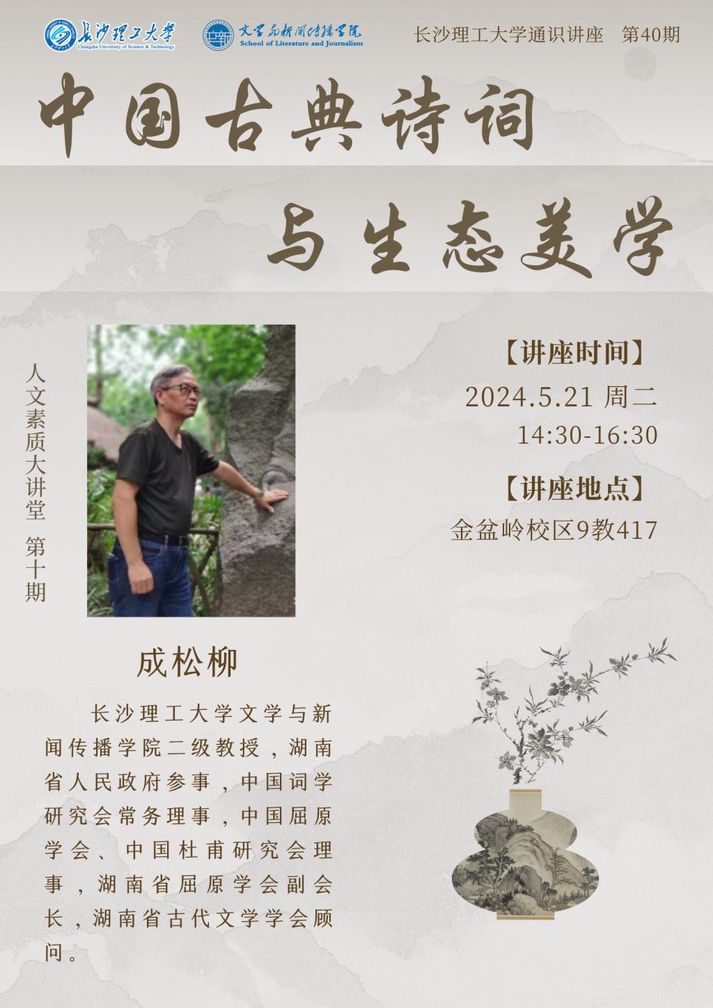 人文素质大讲堂暨通识讲座预告:成松柳教授——中国古典诗词与生态美学