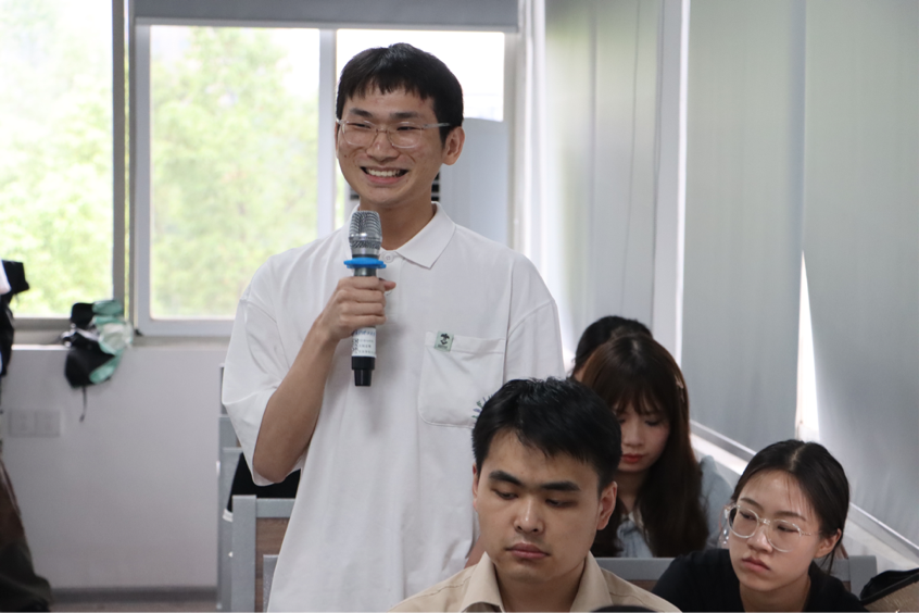 在现场互动环节,成松柳教授就同学们提出的问题进行了解答。关于“王国维的‘轻视外物’与生态美学强调的‘仁爱万物’有何区别”,成松柳教授认为关键在于诗人对于自然是“居高临下”还是“彼此欣赏”的态度:唐代诗歌多以平视角度观察自然,与自然是一种彼此欣赏、彼此成就的和谐关系,这与生态美学主张的“仁爱万物”的观念是一致的。关于“为何诗人总是在归隐或是志向得不到实现时才会去观察山水”的问题,成松柳教授认为,在社会黑暗、抱负难以实现时,接近大自然往往成为了中国古代诗人疗愈心灵的手段,尽管是不得已的选择,但这也使得他们主动亲近自然、尊重自然,从而成就了古代文人与自然之间的和谐关系。