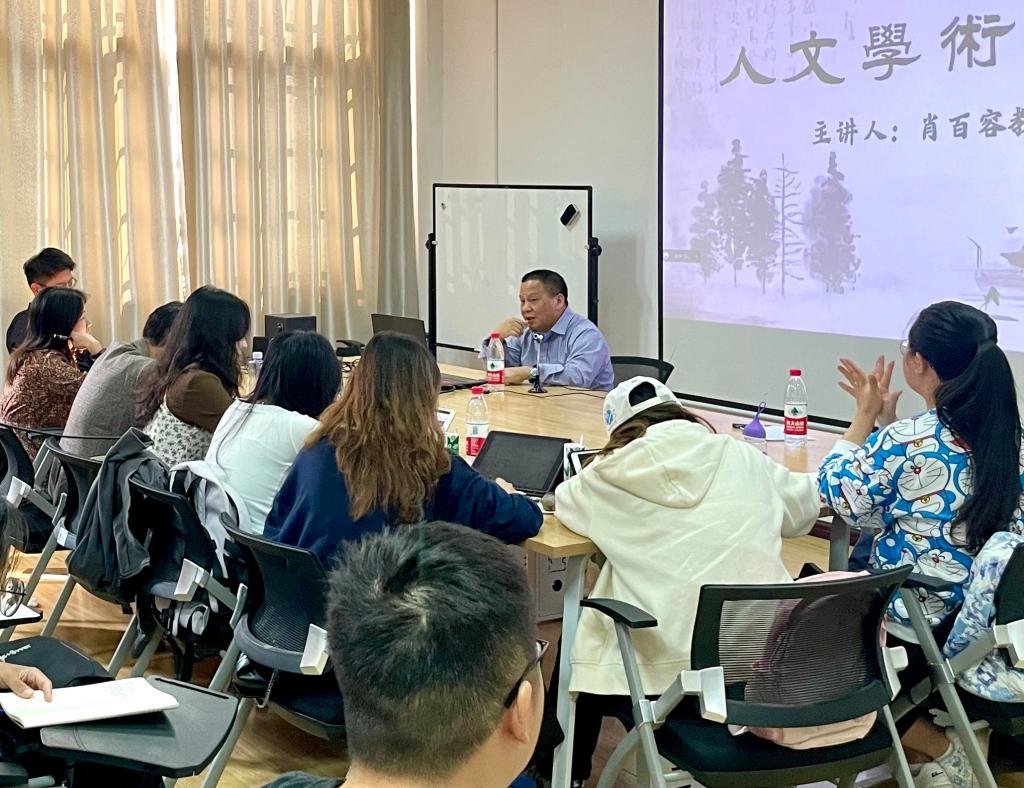 2022年10月22日上午,在线买世界杯平台金盆岭校区7教306教室传来阵阵欢声笑语,第十八届研究生博力学术论坛文新学院分论坛第四期正如期进行。湖南师范大学文学院院长肖百容教授受邀为我院师生开展了主题为“人文学术漫谈”的讲座。