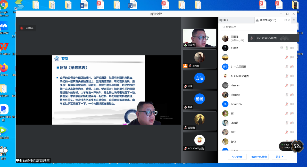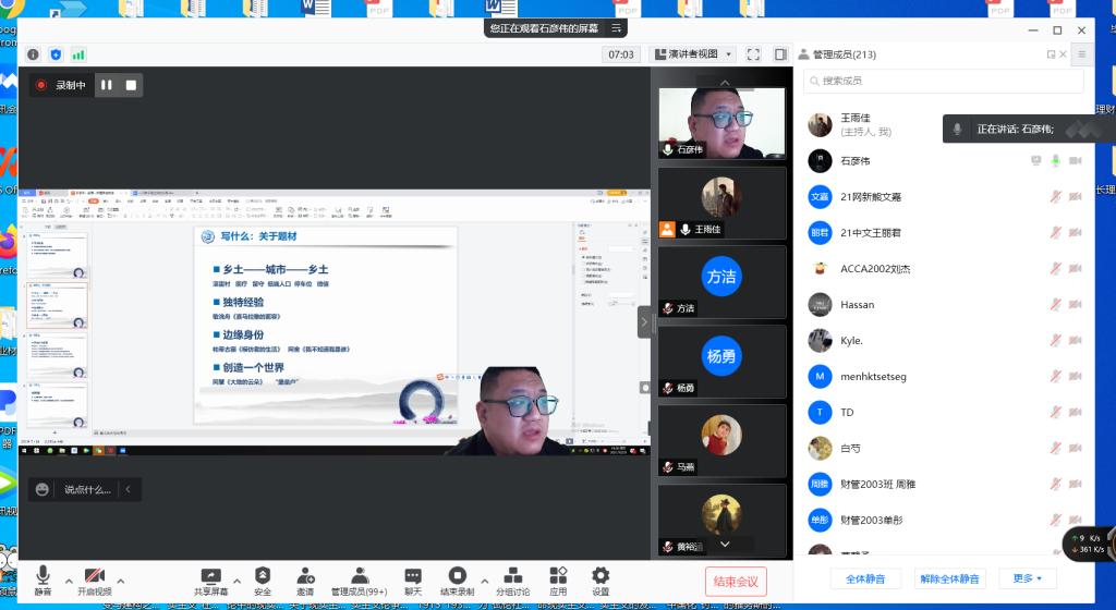 2021年10月29日晚19:00,青年作家石彦伟受邀为我院师生开展了以“散文创作理路与技法”为主题的线上讲座。本次讲座由文学与新闻传播学院王雨佳老师主持,此次会议得到了世界杯官网师生及石彦伟老师的作家朋友的热烈响应,共有220人参与讲座。