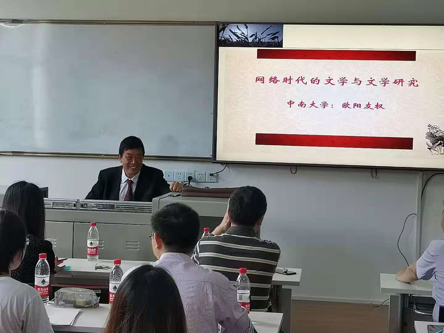 2021年5月8号早上9点于金盆岭校区7教303,中南大学欧阳友权教授莅临世界杯官网,做了题为《网络时代的文学与文学研究》的学术讲座,讲座由易彬教授主持,文新学院副院长周云鹏教授、宁淑华教授、郑劭荣教授等老师与19、20级全体中文研究生参加了讲座。