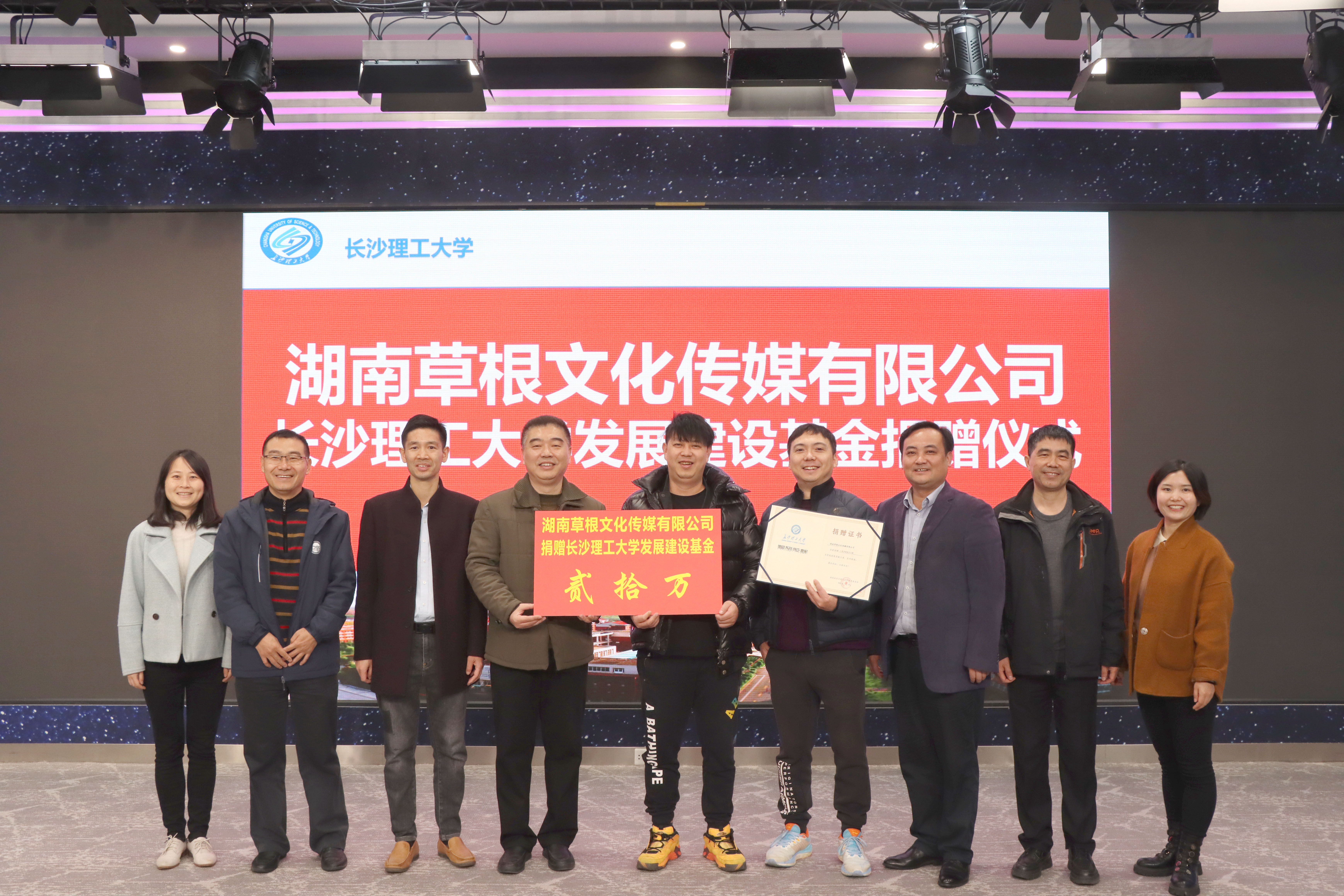 12月11日上午,湖南草根文化传媒有限公司、在线买世界杯平台发展基金捐赠仪式,草根文化在线买世界杯平台研发中心揭牌仪式在文科楼B区文学与新闻传播学院全媒体实训中心举行。