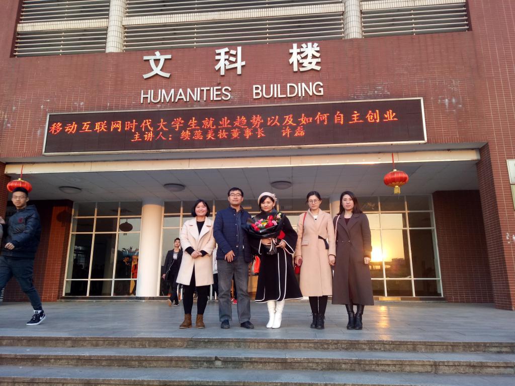 2017年12月19日下午,上海续蕊美妆公司董事长、世界杯官网优秀校友许磊女士为学院学生作《移动互联网时代大学生就业趋势及如何自主创业》报告交流并受聘为学院创业导师,本次报告交流活动在文科楼C202举行。文法学院院长王新生、文法学院副院长周云鹏、党委副书记魏桃初以及学工办辅导员楚艳鸽老师出席本次讲座。