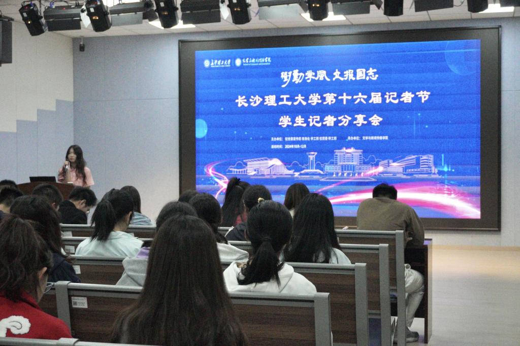 2024年11月5日,由长沙理工大学党委宣传部、教务处、学工部、校团委、研工部主办,我院承办的第十六届记者节学生记者分享会在在线买世界杯平台金盆岭校区九教113新闻演播厅举行。本次活动高举“树勤学风 立报国志”的旗帜,旨在促进世界杯官网新闻人才的交流互鉴,提升学生记者的专业素养。