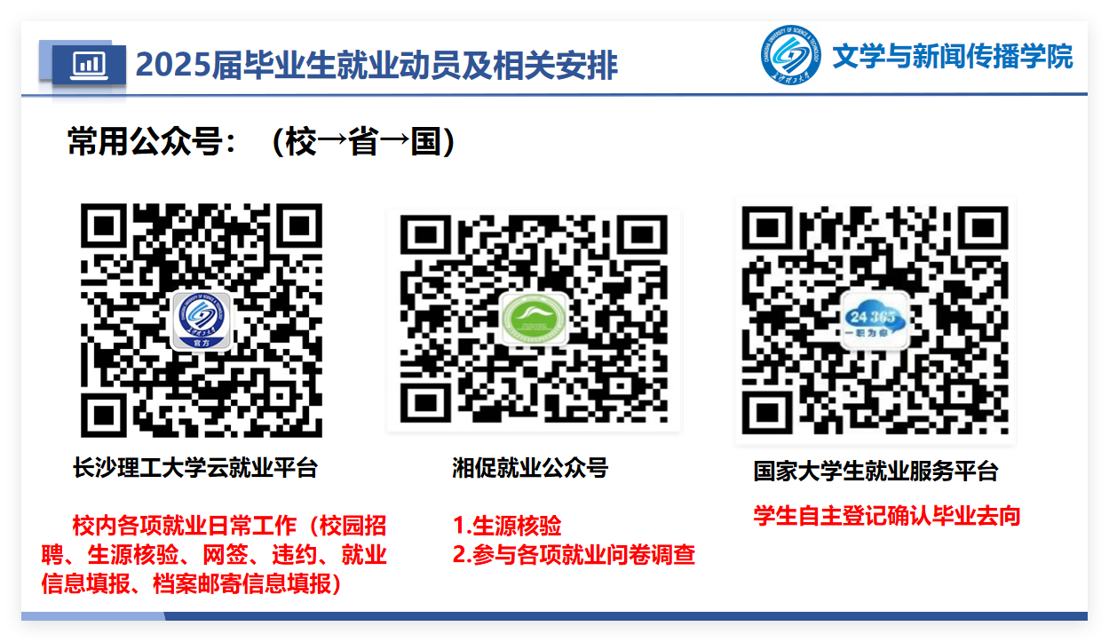 会上,陈鑫宇首先基于我院2024届毕业生就业数据情况进行分析,提出了2025届毕业生择业策略,包括在思想上要积极主动参加就业;类别上要把握长理行业背景和特色,积极发挥专业优势顺势而上;形式上要充分利用云就业平台签订三方;以及在升学和考公考编上理性选择,灵活就业等。