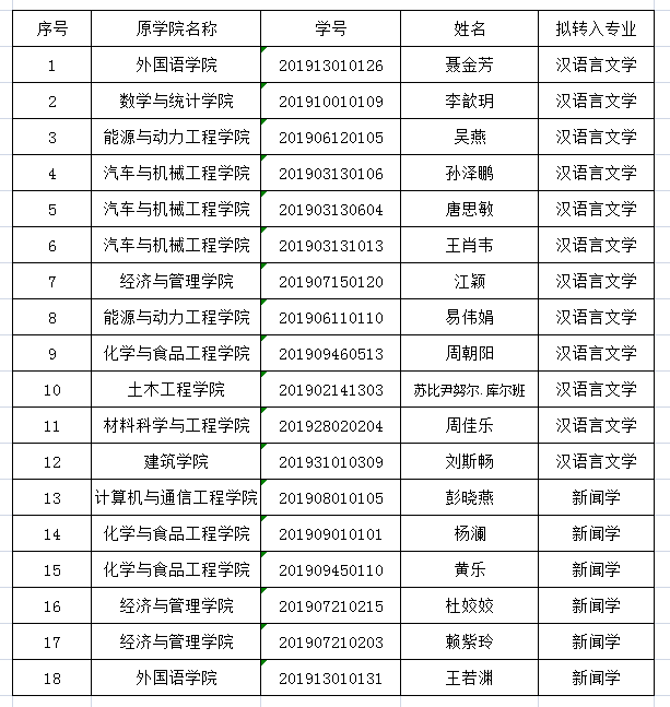根据《在线买世界杯平台生转专业管理办法》和学校《关于适当调整2019级在校本科生转专业(类)报名及考核办法的通知》要求,经个人申请,我系初审,申请转入我系新闻学和汉语言文学专业的学生名单如下,现予以公示。公示期三天,公示时间为5月21日到5月23日,如有异议,请向系教务办反映,电话:85256150 黄老师