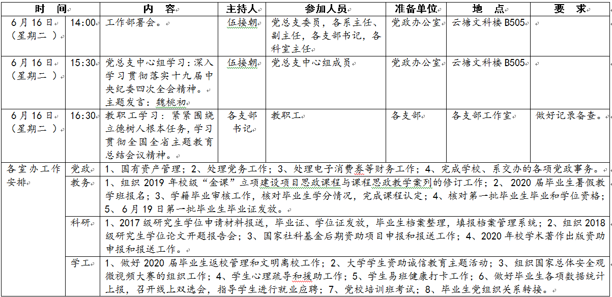文新系2019-2020 学年度第二学期第十八周工作安排表