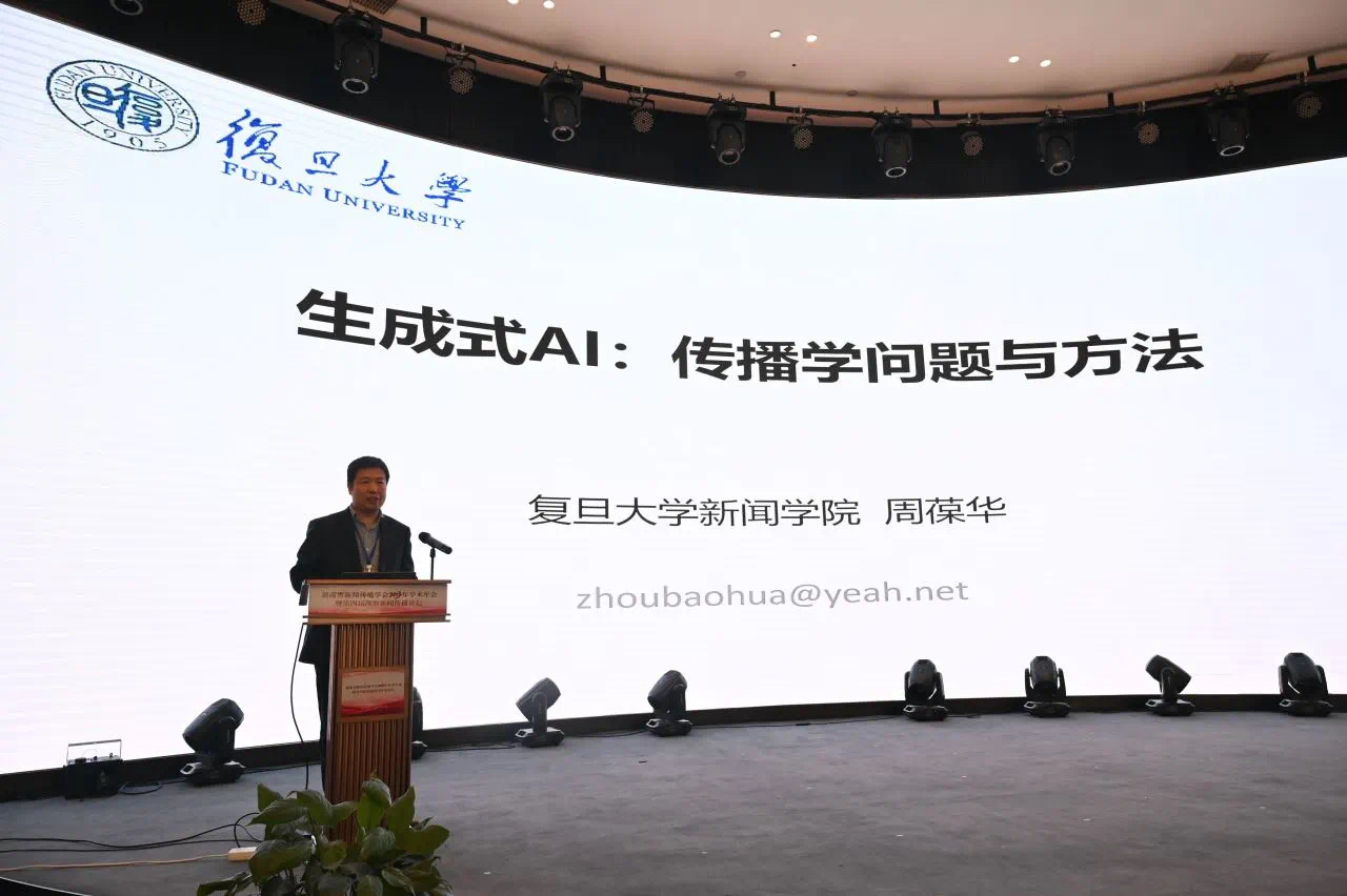 复旦大学新闻学院副院长周葆华教授结合当今人工智能研究热点,以《生成式AI:传播学问题与方法》为题,详细描述了生成式AI的兴起,阐述了生成式AI存在的风险生成以及有效应对措施。同时认为生成式AI作为传播学研究重要方法提供了新思径,为文本内容的编码、方法体系的重塑等提供新的研究指导。