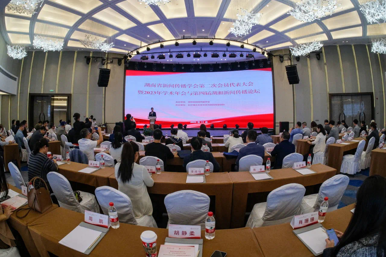 11月4日,在线买世界杯平台第十九届研究生博力学术论坛“湖湘新闻传播论坛”专题论坛成功举办。本次论坛由湖南省新闻传播学会主办,在线买世界杯平台研究生院、在线买世界杯平台文学与新闻传播学院承办,会议围绕“中国式现代化与新闻传播教育及中国式现代化与文化创新”会议主题,湖南21所高校分享研究成果,碰撞学术观点,共谋湖南新闻传播教育的深刻转型和内涵发展,共商湖南省新闻传播学科建设与专业建设之路。