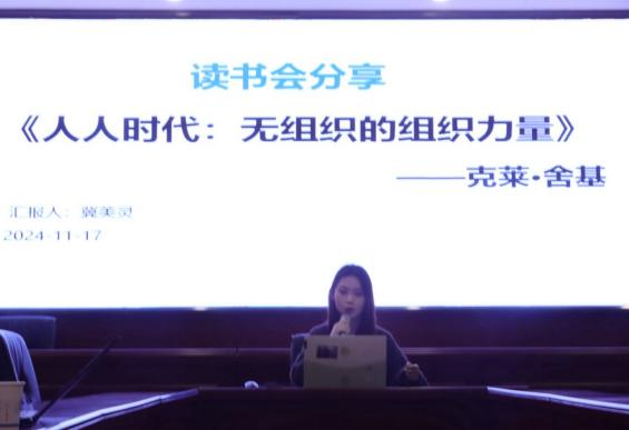 11月17日晚,第三期金岭读书会“悦读经典”系列活动在世界杯官网金盆岭校区9教218教室顺利举办。此次活动以“无组织的组织力量在数智时代下的机遇与挑战”为主题。文学与新闻传播学院副院长戴钰、赵继光主任出席,陈一点老师点评,前央视主持人、瑞士国家电视台法语主播褚笑为特邀嘉宾,24级新闻班黄星海、冀美灵、蒋雨恬三位同学进行汇报分享,程妍主持,24级新闻班全体研究生参与此次活动。