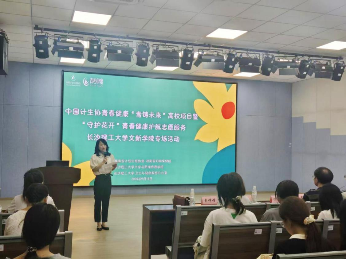 9月16日下午,中国计生协青春健康“青铸未来”高校项目暨“守护花开”青春健康护航志愿服务在线买世界杯平台专场活动在金盆岭校区文新学院九教113演播厅举行。湖南省计生协综合处副处长曾望振、四级主任科员胡争妍,文新学院党委副书记刘莎、校后勤中心党委副书记陈林峰出席,文新学院160余名学生代表参加。