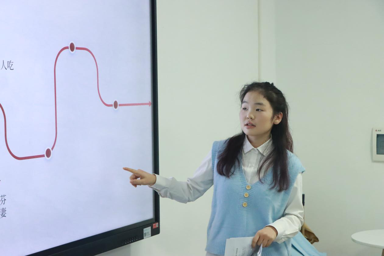 主题讨论环节,莫尚葭老师引导同学们从“苦难中的人性温度”等角度,对许三观、许玉兰、一乐等人物形象展开多元探究。同学们就“结尾许三观为什么哭?”“一乐到底是谁的孩子?”等话题踊跃发言,现场观点碰撞,氛围热烈,让大家对这部作品的理解从情节层面深入到精神与时代层面。