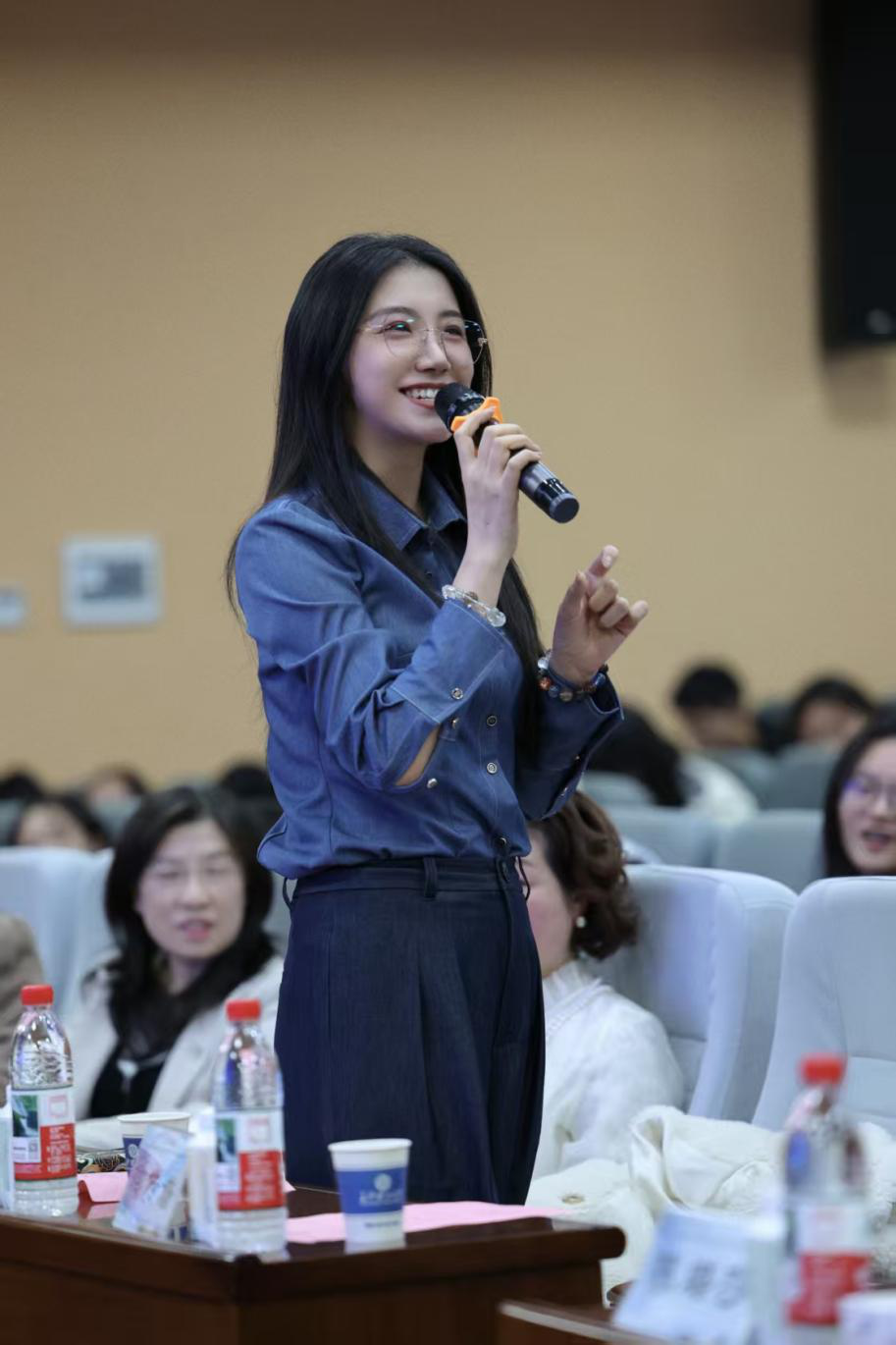 进入评委点评环节,彭文馨高度评价了参赛选手的表现,并与参赛选手展开互动。针对什么题材的朗诵作品最能表达感情的问题,她表示,符合时代旋律的作品最能表达感情,亲身经历更能打动人心;关于如何运用不同音色的问题,她指出,音色的转换不是一蹴而就,需要长期的积淀。与音色相比,更重要的在于表达内容。她希望同学们善于观察生活中的细节,从点滴之处发掘价值的同时坦率表达内心感情,让自己的话语更加富有力量。