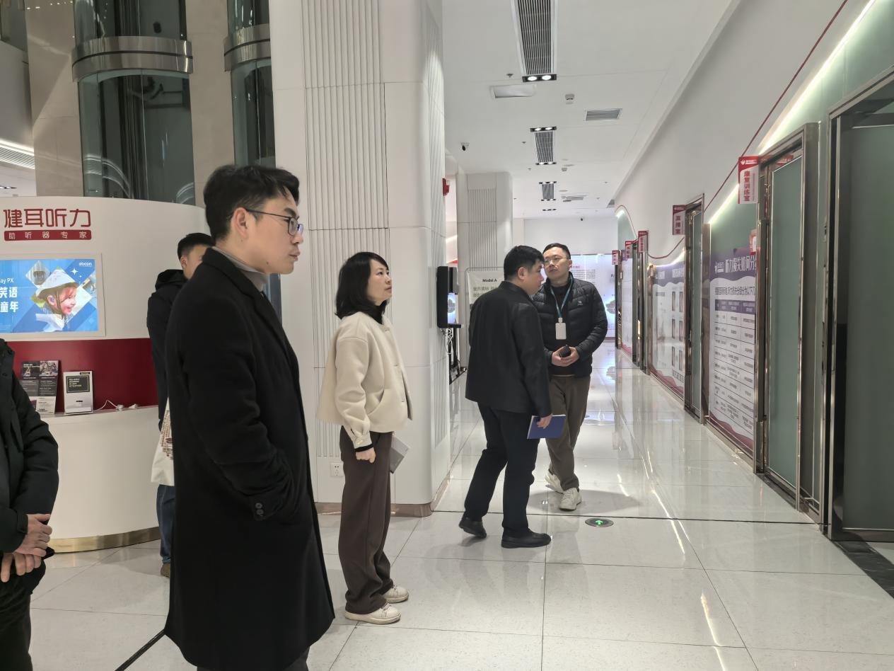调研组人员首先参观了可孚医疗产品陈列区,详细了解企业核心产品与创新成果,并实地考察企业办公环境及研发中心。参观过程中,企业相关负责人重点介绍了公司及旗下子品牌的发展历程与市场布局。随后,双方在会议室召开座谈会,就深化校企合作事宜进行深入交流。可孚医疗人力资源负责人详细介绍了企业发展规划与校园招聘需求,双方围绕校园招聘、大学生职业生涯规划、“三湘名企行” 等事项展开充分探讨。