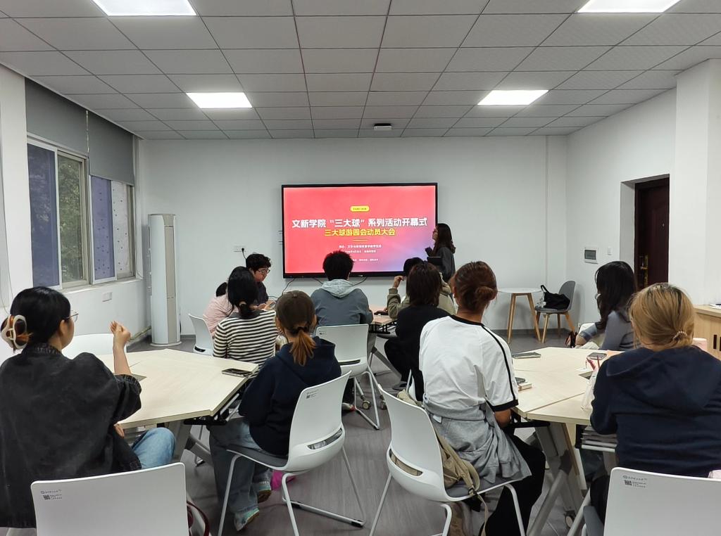 2026年4月14日下午,为丰富校园文体生活,营造积极向上的校园运动氛围,推动学院体育活动有序开展,在线买世界杯平台文学与新闻传播学院三大球系列活动开幕式暨游园会动员大会于九教223学院团体成长辅导室顺利举行,各班文体委员参加。