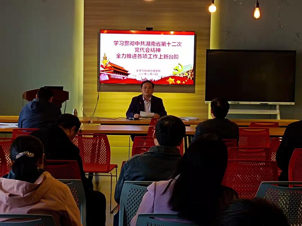 文新学院举行学习贯彻党的十九届六中全会精神和中共湖南省第十二次党代会精神专题宣讲会