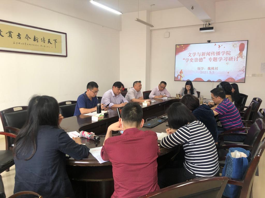 5月7日下午,学院党总支以党史学习教育第三专题“学史崇德”为主题组织党总支理论学习中心组学习。党总支书记伍接朝主持学习研讨,党总支理论学习中心组成员、各系(办)主任、各支部书记参加学习,副院长魏桃初做主题发言。