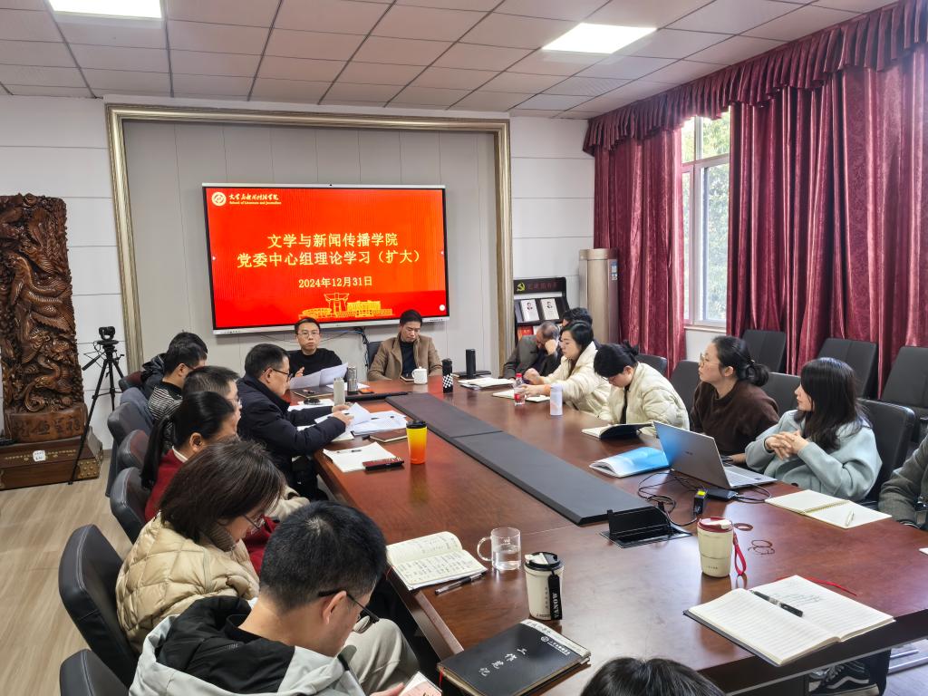12月31日下午,学院党委理论学习中心组开展学习,学院党政班子全体成员和院属各机构负责人、教工党支部书记参加学习。党委书记陈仁凯主持,院长刘建新、党委副书记刘莎、副院长戴钰、党委委员侯承相作主题发言。