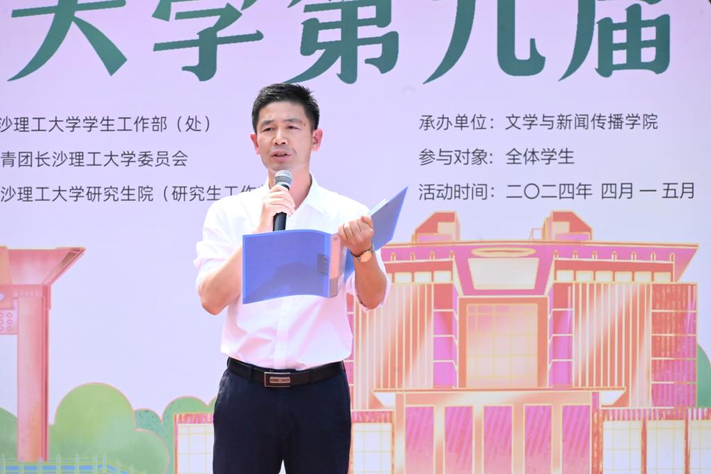 文新学院院长刘建新致开幕辞。他表示,世界杯官网中华文化节是展示和传播传统文化的重要平台,一直以来坚持传承与创新,在传统文化中注入时代精神,打造了中华诗词大会等多项精品活动,让长理学子深切感受了传统文化的魅力。今年中华文化节的主题是“树勤学风、立报国志”,希望同学们能汲取中华传统文化中“勤学笃实”的智慧与养分,坚持向经典学习,向优秀学习,练就过硬本领,坚定理想信念,矢志成才报国,让青春在不懈奋斗中绽放绚丽之花。