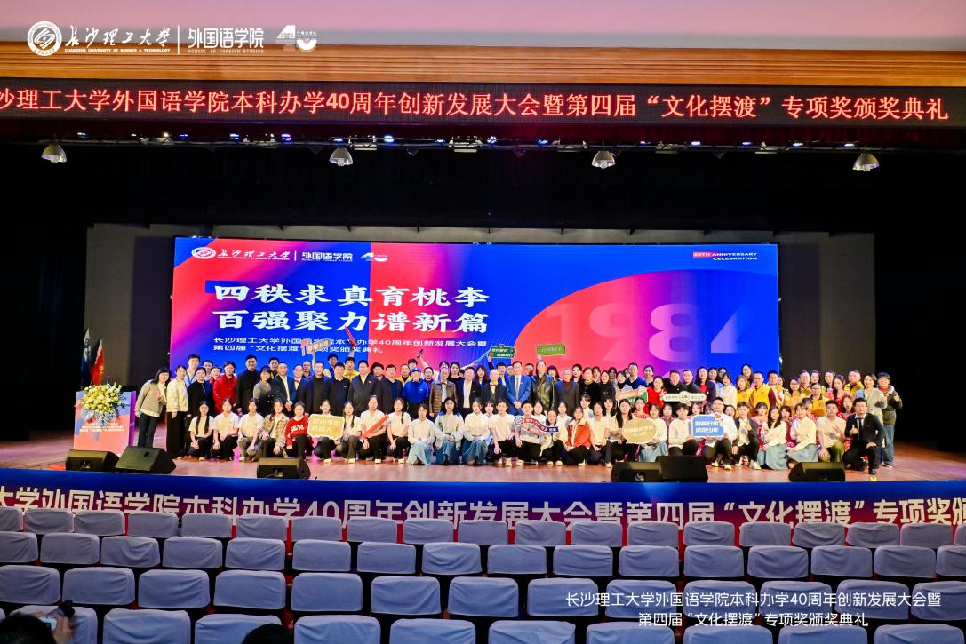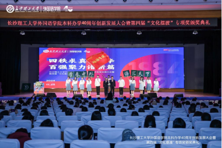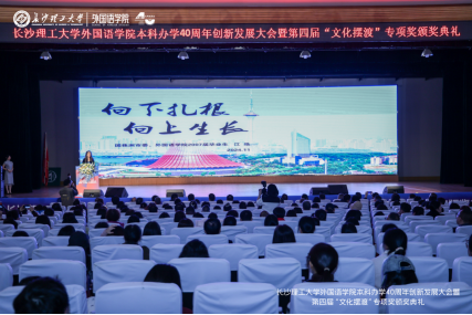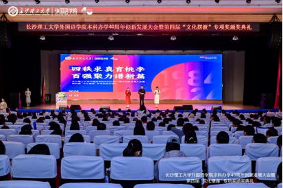 11月24日上午,在线买世界杯平台外国语学院在金盆岭校区举办本科办学40周年创新发展大会暨第四届“文化摆渡”专项奖颁奖典礼,以外语之名,携手前行,拥抱未来。在线买世界杯平台副校长、校友总会会长谈传生、副校长刘朝晖、张军辉、学校相关职能部门负责人、社会爱心人士与企业代表、学院老教师、返校校友及全体师生共1000余人参加大会。大会由学院党委书记文丽丽、校友代表丁文山、学生代表熊雅萱主持。