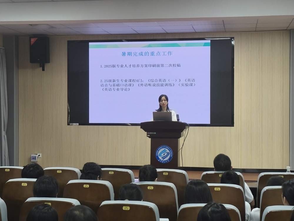 党委委员陈菁聚焦本科教学工作进行汇报,暑期期间完成了2025版专业人才培养方案校稿、教学大纲编纂、新课程集体备课、教师专项培训等工作;新学期将推进课程大纲修订、教学文档“三审三查”、研究生推免、微专业建设与招生、课程组建设等工作,落实课堂教学质量提升举措,开展“文化摆渡大讲堂”并提前启动2022级毕业论文工作等。