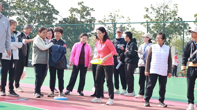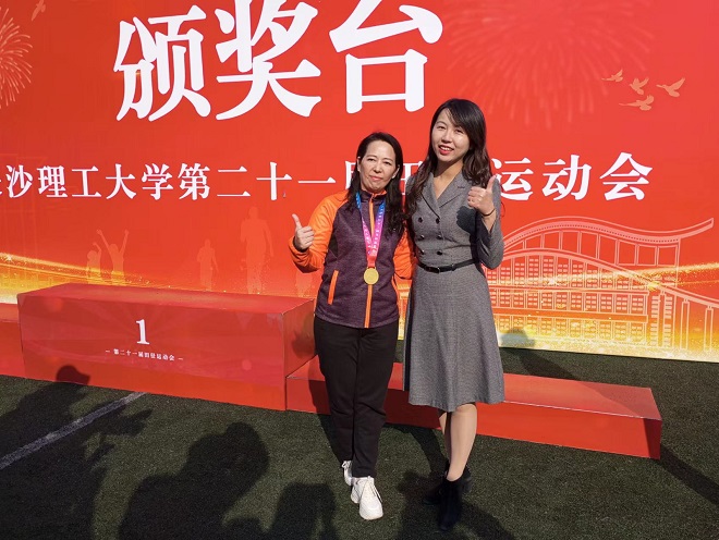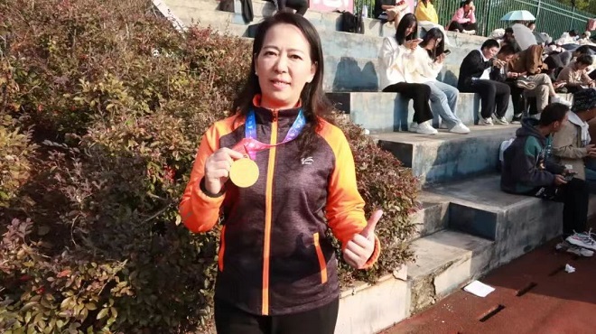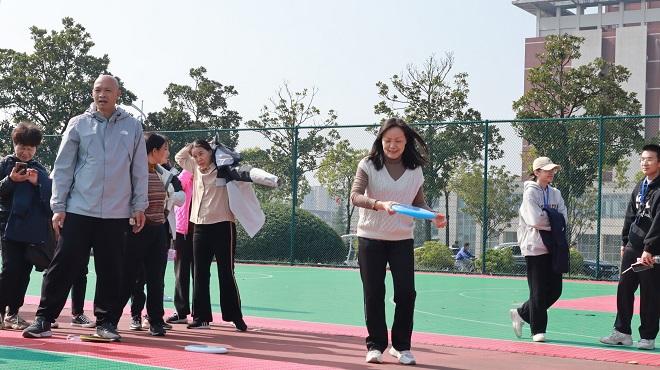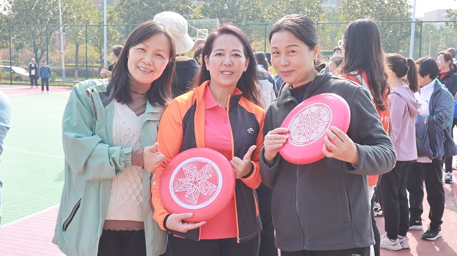 雷英回答:这一次我的感受颇多,心里特别开心、兴奋!这也是自己在外语学院这么多年取得的最好成绩。半个月的备赛期里,我买了飞盘来练习,每天去操作上练,还有朋友、同事和家人都来指点自己怎么让飞盘飞得远、飞得好,及时改进动作,所以让我自己能够有信息。上了赛场之后,虽然有点紧张,但对自己抱有很大的信心,所以发挥得还可以。学院这一次组织得特别好,段胜峰院长、文丽丽书记都特别地关心!院工会组织了拉拉队,学工办的辅导员给我们每个参赛的老师都配备了一个小帮手,就像我们的小李同学、小刘同学、小张同学...我都记得。我每参加一个项目他们都跟着,很贴心地给我拿水、包、手机,这些也给了我更多的信心让我去努力。所以这一个奖项不是我一个人的,是外国语学院所有人获得的一个荣誉!