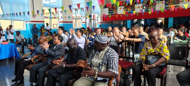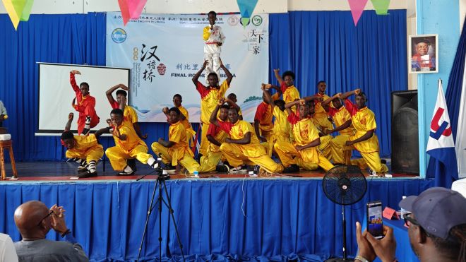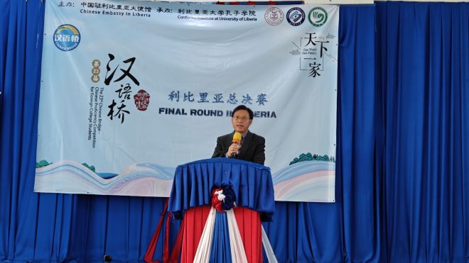 2024年5月17日,利比里亚大学孔子学院在利大国会山校区隆重举办了第23届“汉语桥”世界大学生中文比赛预选赛利比里亚赛区总决赛。中国驻利大使尹承武阁下、利比里亚教育部助理部长Nyensuah女士、利比里亚广播电台台长Faghon先生、利比里亚大学代理校长Taylor教授、中资企业和机构代表以及利大孔院师生近300人参与活动。部分孔院教学点学生和武术课堂的学员进行了暖场表演。利国多家主流电视、广播及网络媒体对此次活动进行了现场直播和新闻报道。