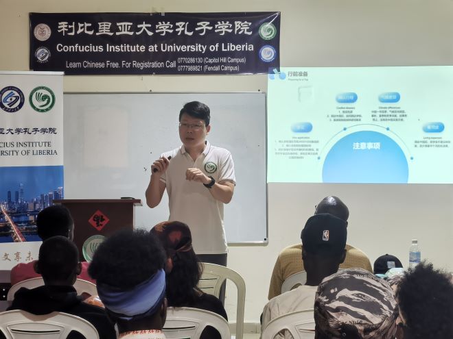 最后会议进入了热烈的答疑环节,孔院教师和刚从中国返回利比里亚的留学生们认真仔细地回答了与会同学们的提问。