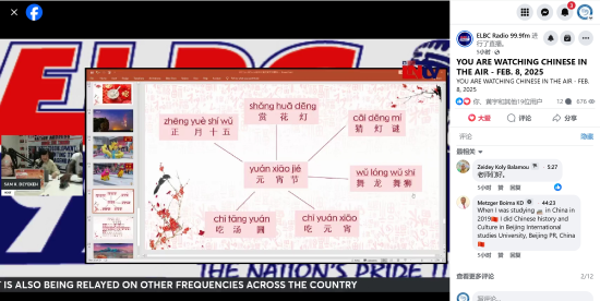 《空中汉语》作为利大孔院中文教学的特色项目之一,不仅致力于教授中文语言知识,还通过“文化介绍”板块全面展现中国文化的丰富内涵。通过这一系列文化展示与互动,节目帮助利比里亚观众更好地了解中国传统节日的习俗与文化,加深了他们对中国传统节日的认同与喜爱。利比里亚的观众也期待着未来更多类似的文化节目,进一步促进中利两国文化交流与互鉴。