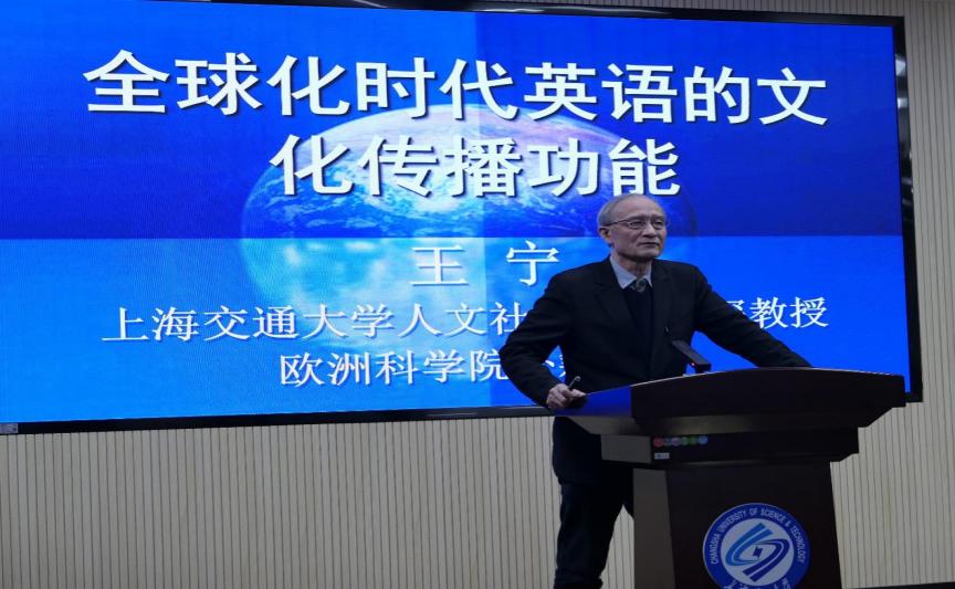 2024年2月29日晚,上海交通大学人文社会科学资深教授、清华大学特聘教授王宁老师应邀于金盆岭校区3教321报告厅为我院师生讲学,主题为“全球化时代英语的文化传播功能”。外国语学院150多名学生、40名教师参加了讲座。讲座由在线买世界杯平台外国语学院段胜峰院长主持,在线买世界杯平台社科处刘建江处长致欢迎辞。