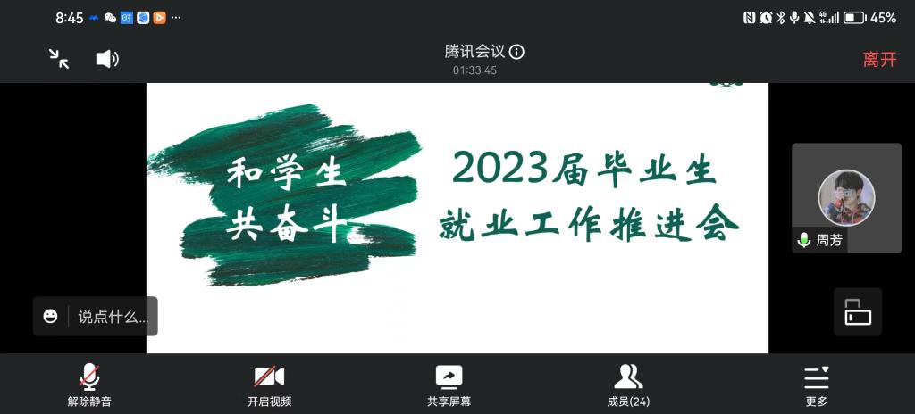 2023年3月2日晚上19:30,外国语学院在腾讯会议召开2023届毕业生就业工作推进会,学院全体领导班子、2023届研究生导师、2019级班主任、年级辅导员出席会议。