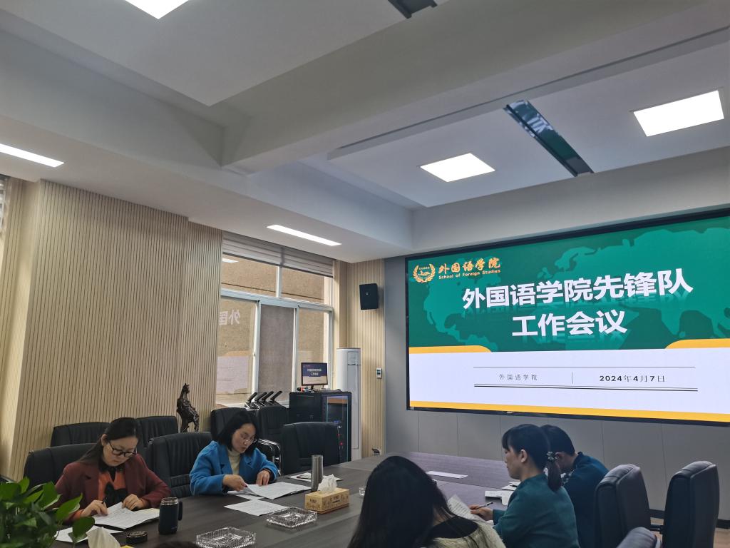 为加强教师服务意识,促进党建与教书育人的深度融合,发挥外语学科对人才培养国际化的支撑作用,4月7日下午15:00,外国语学院在金盆岭校区3号教学楼214会议室组织召开了“外院先锋队”工作会议。此次会议由党委书记文丽丽主持,党委副书记周芳、外院先锋队队长和副队长及学生工作办公室辅导员参加了会议。