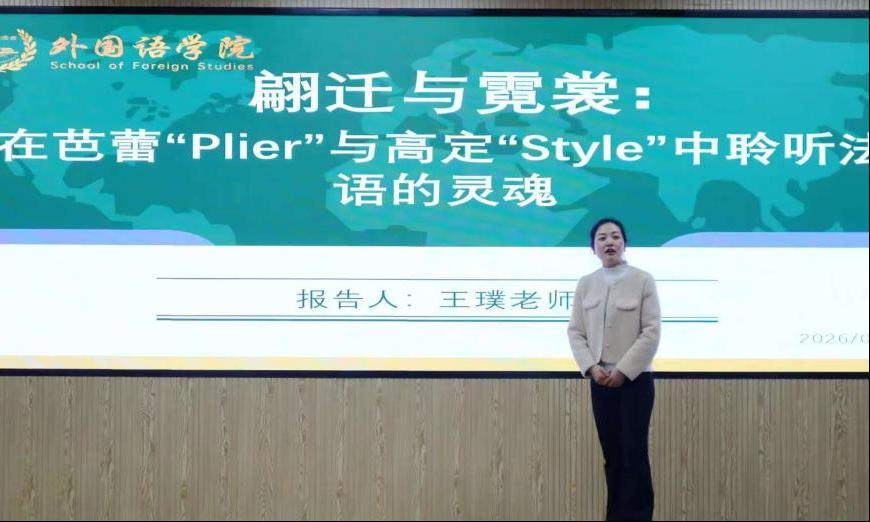 为丰富校园文化生活,提升学生人文素养,感受法语与法国文化魅力,外国语学院于4月8日晚19点举办“翩跹与霓裳:在芭蕾‘Plier’与高定‘Style’中聆听法语的灵魂”通识教育学术讲座。本次讲座由学院法语专任教师王璞主讲,面向全校学生,旨在以艺术为载体,带领学生沉浸式探索法语魅力与法国文化底蕴。