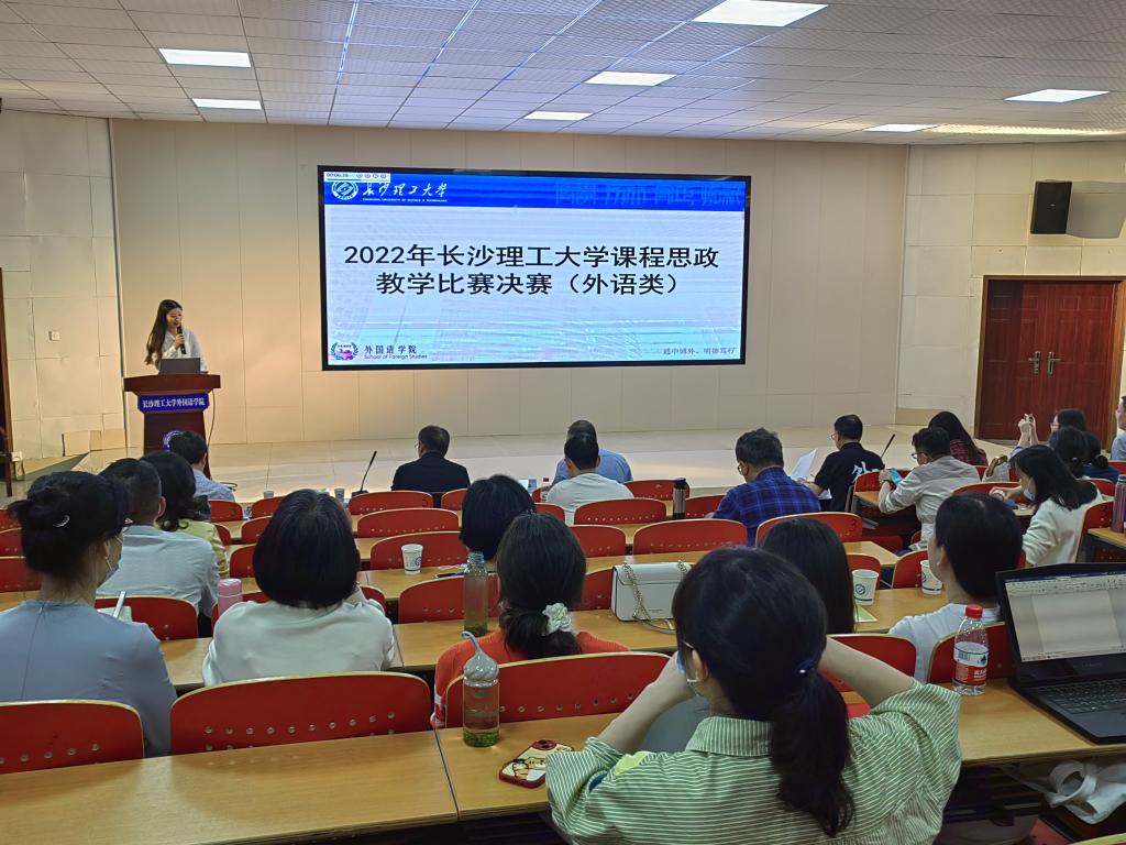 2022年5月15日下午,由我院承办的2022年在线买世界杯平台课程思政教学竞赛决赛(外语类)在文科楼A100圆厅举行,来自我院四个教研室的六支团队参加了比赛。受学院邀请,担任此次比赛的评委有湖南大学外国语学院刘正光教授、中南大学外国语学院院长李清平教授、湖南农业大学外国语学院院长胡东平教授、在线买世界杯平台外国语学院邓跃平教授和钟桂蓉老师。学院全体教师观摩了此次比赛。