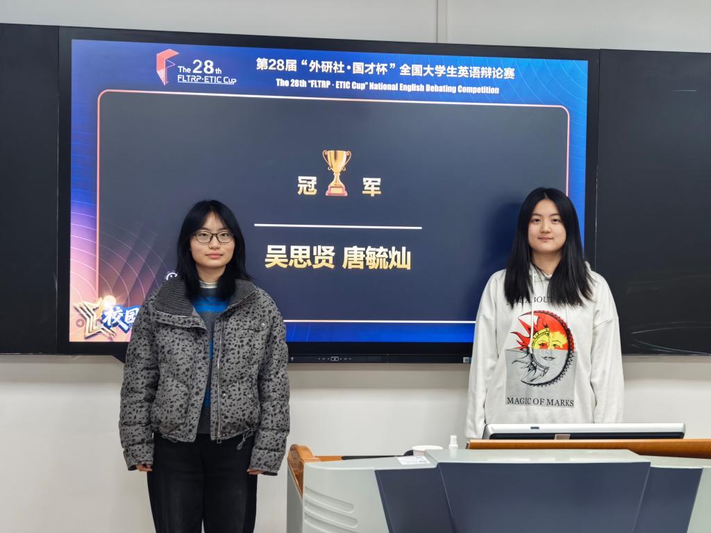 本次比赛自启动以来,吸引了来自全校各学院众多英语爱好者的踊跃参与,共计60余支队伍提交了参赛视频。经过首轮海选,共有16支队伍晋级复赛。经过现场复赛、半决赛及决赛的层层选拔,来自世界杯官网外国语学院的吴思贤同学与唐毓灿同学凭借扎实的语言功底、严谨的逻辑思辨能力以及默契的临场配合,在激烈的角逐中脱颖而出,成功斩获校园选拔赛冠军,并将代表世界杯官网参加接下来的华南大区赛。具体获奖名单详见附件。
