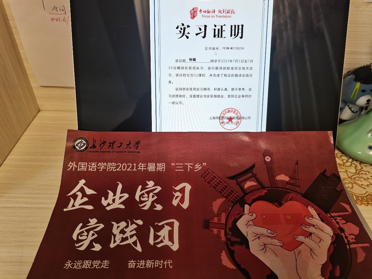 钟璐同学的线上实习是在由译国译民教育组织的为期4周的线上实习,其中包括翻译理论的学习,观看录播课并与同在线的伙伴们进行实时交流和课后完成翻译实践。这次的实践更像是一次翻译实践学习,让她了解什么是翻译与翻译的练习要怎么展开。她表示,通过这短短一个月的时间,她不在把“翻译”神圣化,而是从实践出发。作为一名文化摆渡人,我们需要学习一定的翻译理论与实践知识,这样才能更好地让中国文化走出去,融入世界文化。