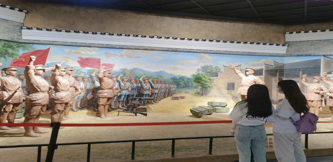 参观完烈士陵园之后,实践队员又来到平江起义纪念馆。纪念馆内根据时间线索列出了平江起义不同时期的重要事件及人物,展示平江起义的全过程。馆内还陈列着许多珍贵的革命藏品,其中包括滕代远同志在革命战争年代使用过的公文包以及平江起义部队用过的红绸带等。