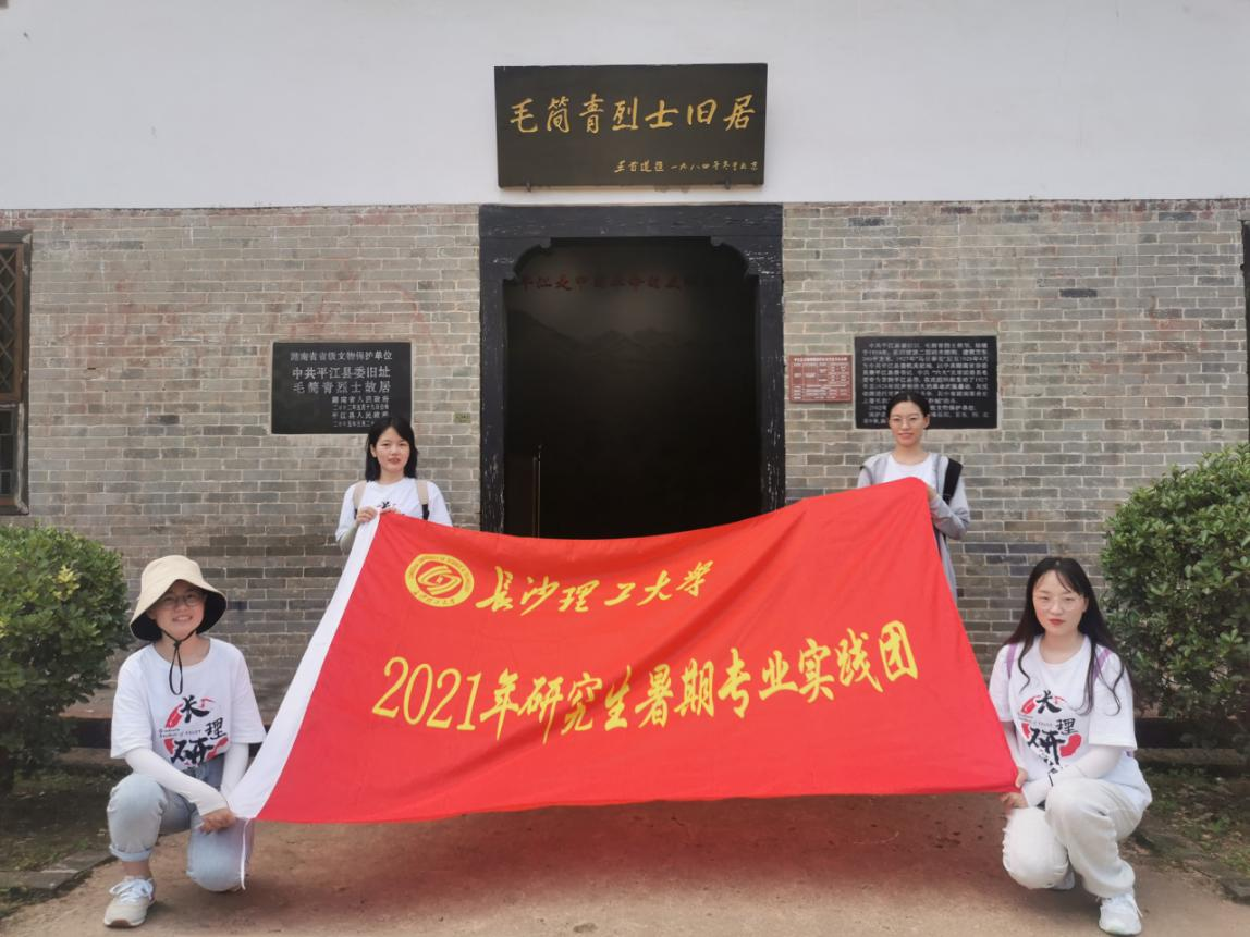 在建党100周年之际,为响应国家“学党史、悟思想”的号召,弘扬中国红色文化,并助中国革命精神走出去。2021年7月16日,在线买世界杯平台外国语学院研究生暑期实践团在段胜峰教授和袁媛老师的全程指导下,来到了平江县毛简青烈士旧居开展系列调研活动,助推湖湘红色文化走出去。