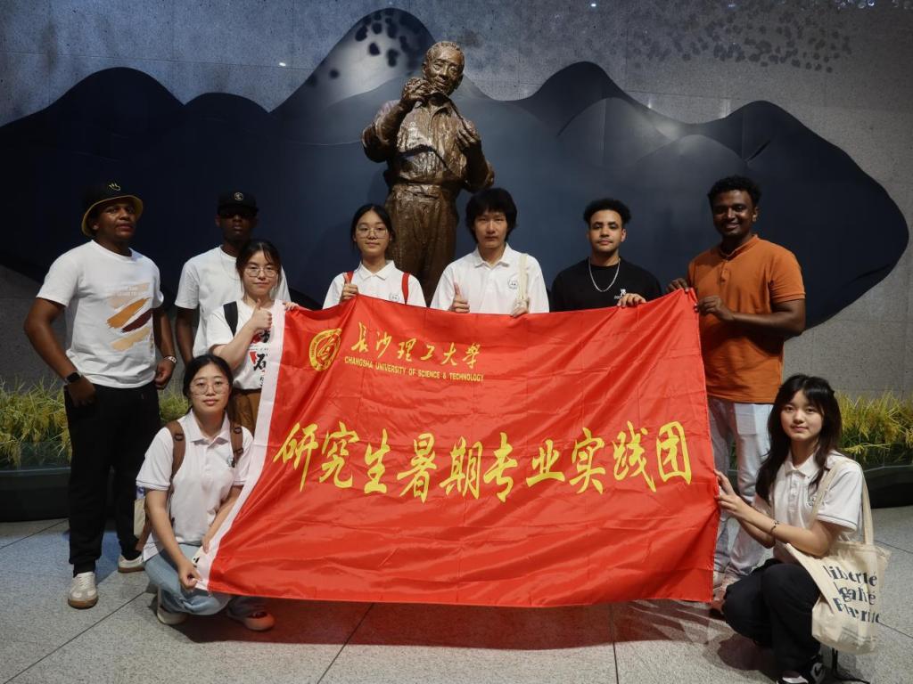 7月7日,在线买世界杯平台外国语学院研究生暑期专业实践团和来自摩洛哥、苏丹、肯尼亚、尼日利亚等国家的外国友人共同探访隆平水稻博物馆,学习水稻种植的悠久历史,了解“杂交水稻之父”——袁隆平院士的卓越成就。