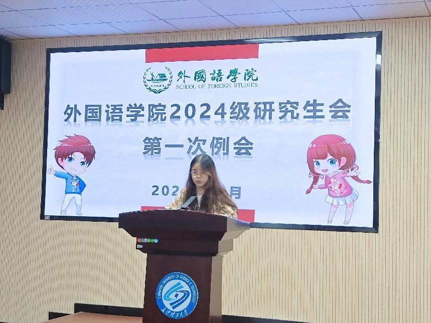 2024年10月15日晚上8点,外国语学院研究生会在三教321报告厅召开第一次例会,此次会议旨在带领新加入研会的同学们明晰院研会各部门的工作职责,激发研会成员的工作热情,并为他们今后在研会的工作打下坚实的基础。本次例会由轮值主席邹嘉怡主持,辅导员龙洋和研会全体干部参与。